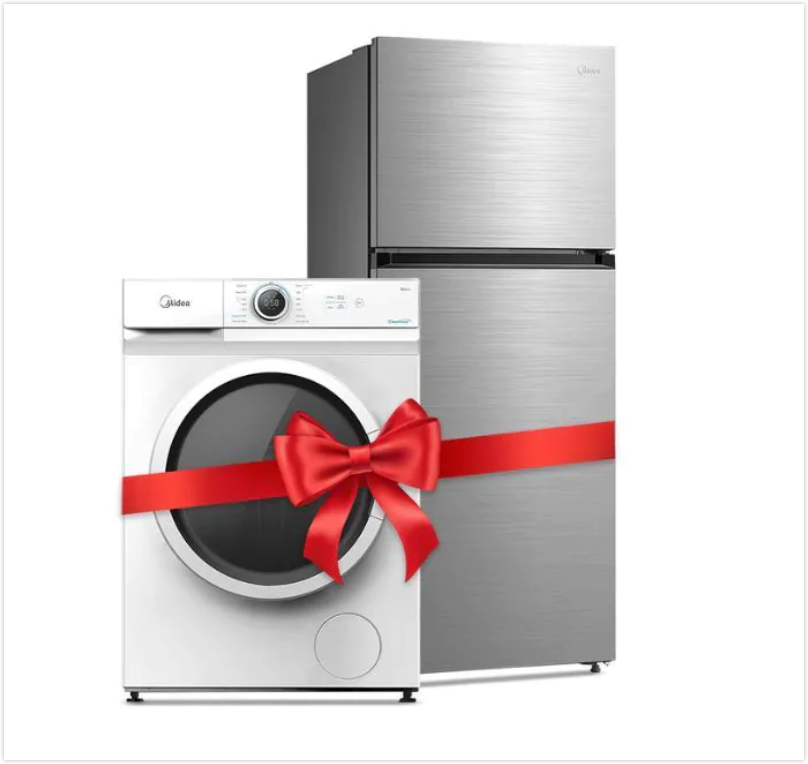 Midea 8KG Front Load Washing Machine (+) Midea 489L Gross Top Mount Double Door Refrigerator